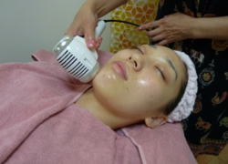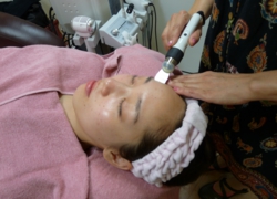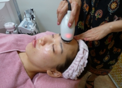 超音波クレンジング→超音波マッサージでお顔の筋肉までマッサージしてリフトアップ。
