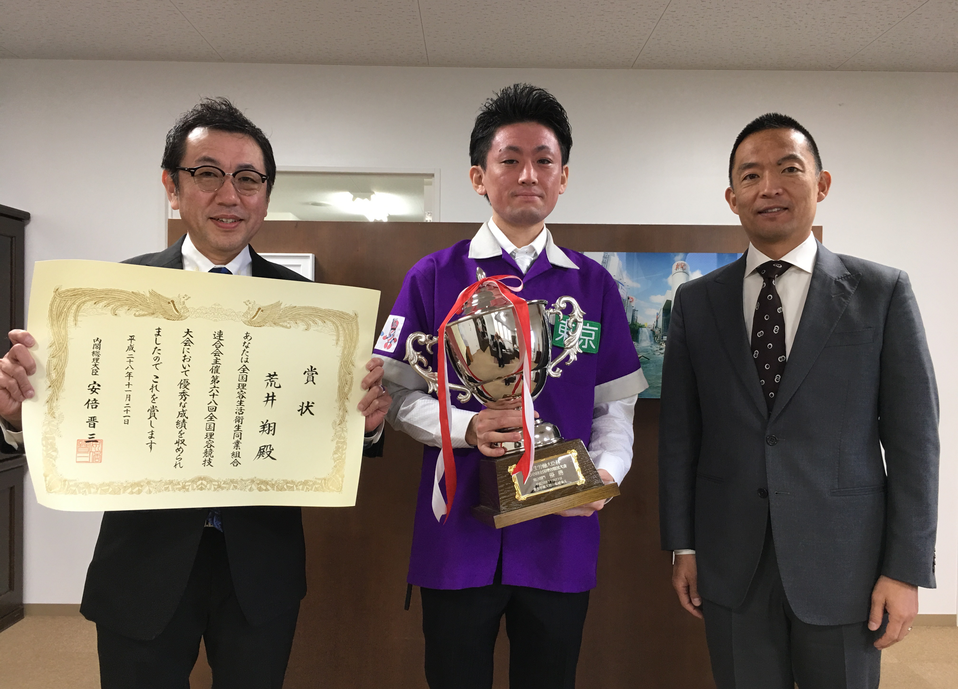 平成28年11月21日(月曜日)に高知県で全国理容競技大会が開催され、スタッフの荒井翔が見事優勝し日本一の栄冠に輝きました。応援ありがとうございました。
